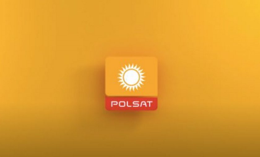 Logo polsat to biała ikona słońca na pomarańczowym tle oraz nazwa stacji w czerwonym prostokącie.